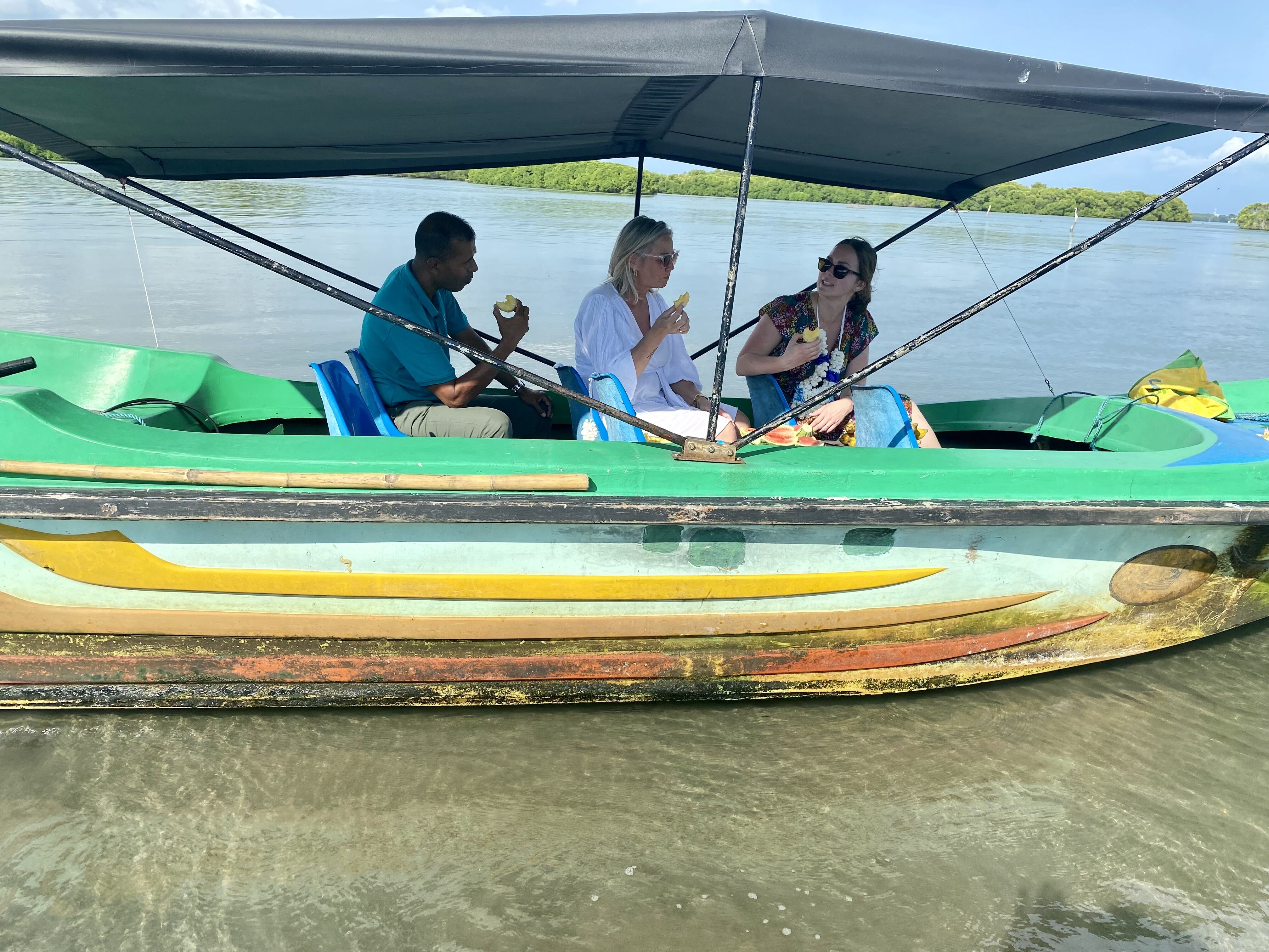 Vanaf ons resort stapten we aan boord van onze eigen privéboot voor een onvergetelijke boottocht over de lagune. Terwijl we door het water langs de lokale vissershuisjes gleden, komen de vismarkt, tientallen vissersboten en de prachtige mangrovebossen. Onderweg spotten we exotische vogels, leguanen en zelfs aapjes! Vervolgens stopten we op een ondiep stukje van de lagune om lekker te genieten van een stuk vers gesneden fruit, geserveerd door onze schipper. Heerlijk verkoelend met onze voeten in het water!